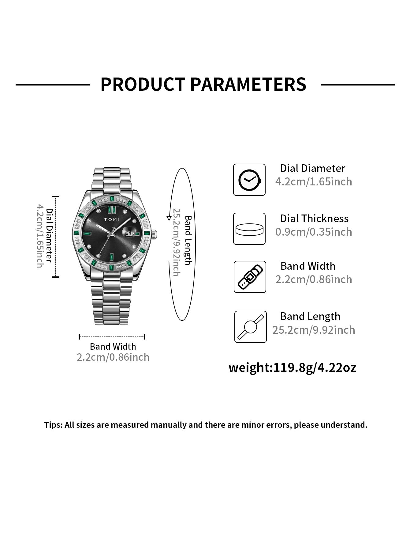 --  This watch comes with a strap adjuster that can be adjusted in size to fit your wrist and can be adjusted to different lengths, so you never have to worry about it being too long or too small.